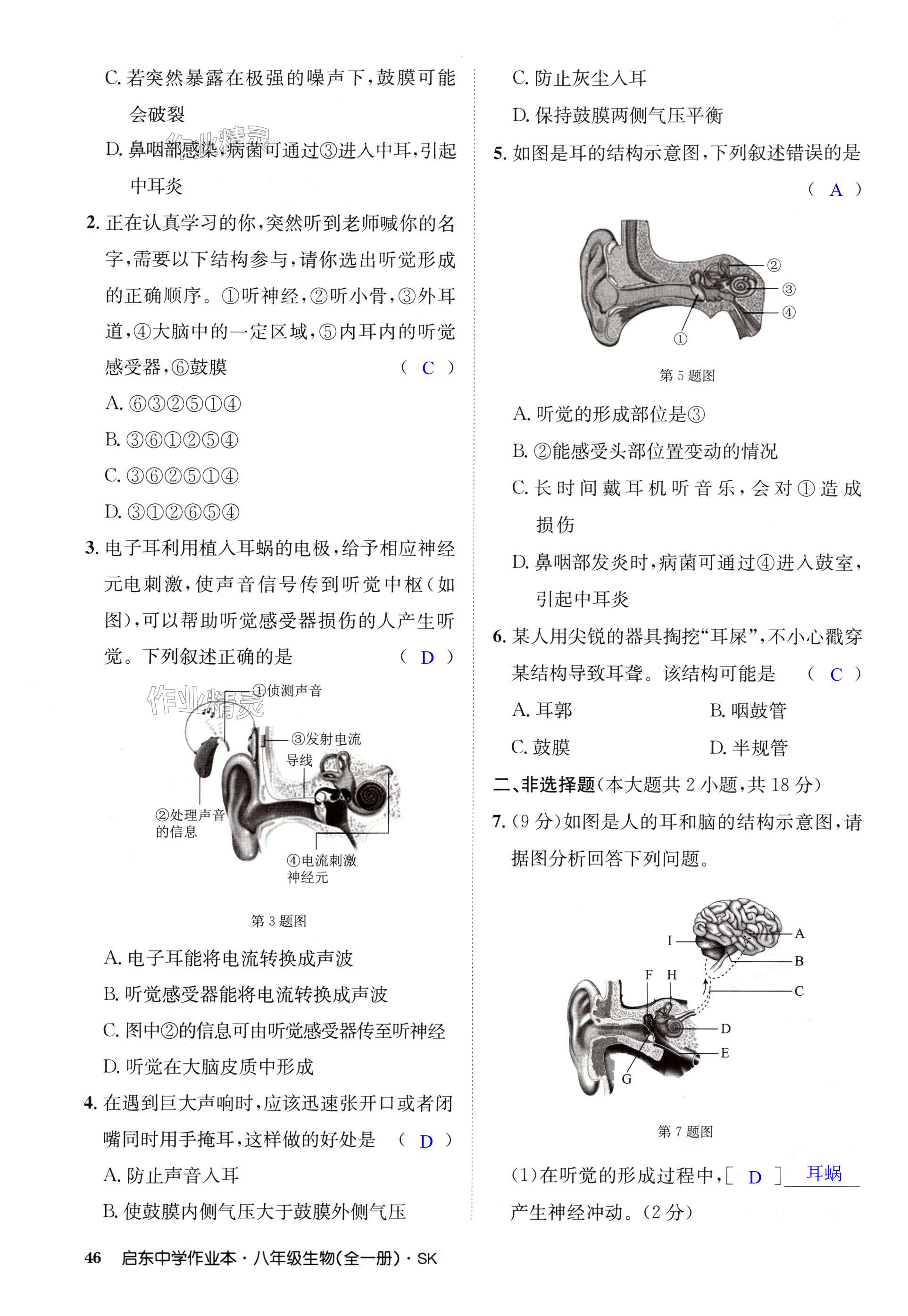 注:目前有些书本章节名称可能整理的还不是很完善,但都是按照顺序排列的,请同学们按照顺序仔细查找。练习册 2024年启东中学作业本八年级生物全一册苏科版 答案主要是用来给同学们做完题方便对答案用的,请勿直接抄袭。