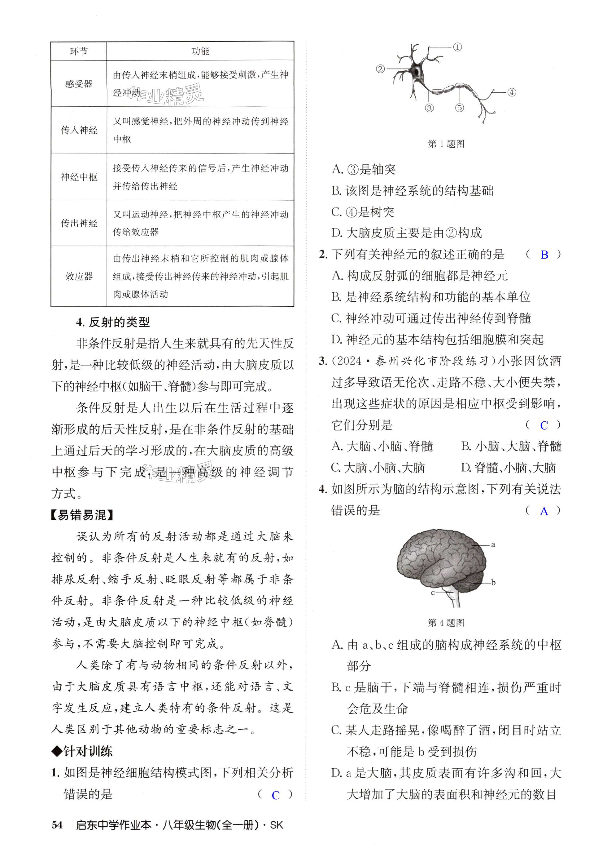 注:目前有些书本章节名称可能整理的还不是很完善,但都是按照顺序排列的,请同学们按照顺序仔细查找。练习册 2024年启东中学作业本八年级生物全一册苏科版 答案主要是用来给同学们做完题方便对答案用的,请勿直接抄袭。