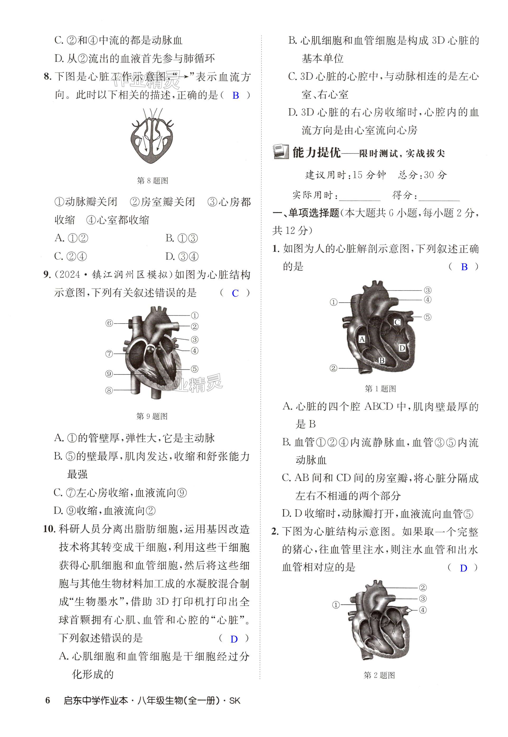 注:目前有些书本章节名称可能整理的还不是很完善,但都是按照顺序排列的,请同学们按照顺序仔细查找。练习册 2024年启东中学作业本八年级生物全一册苏科版 答案主要是用来给同学们做完题方便对答案用的,请勿直接抄袭。