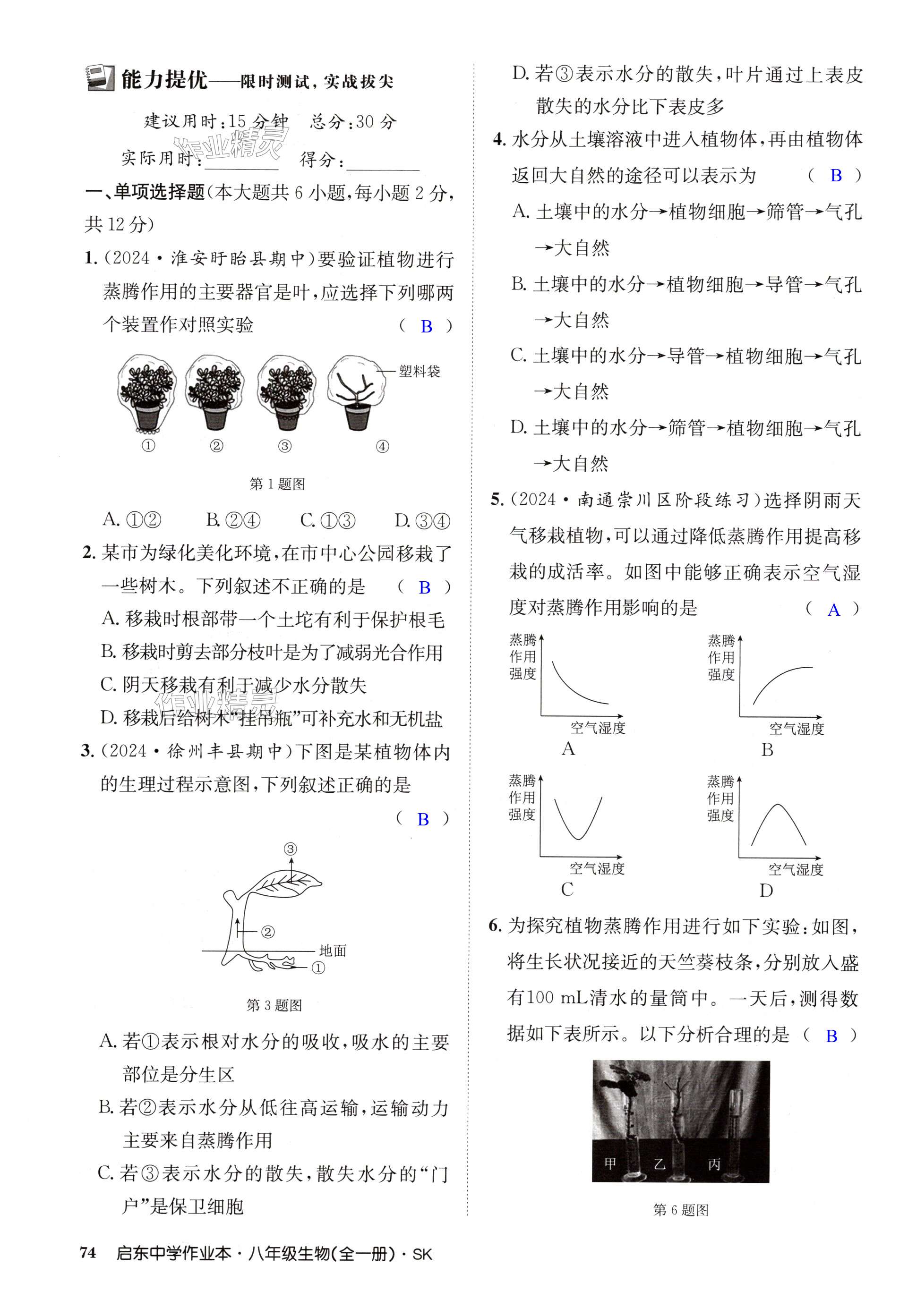 注:目前有些书本章节名称可能整理的还不是很完善,但都是按照顺序排列的,请同学们按照顺序仔细查找。练习册 2024年启东中学作业本八年级生物全一册苏科版 答案主要是用来给同学们做完题方便对答案用的,请勿直接抄袭。