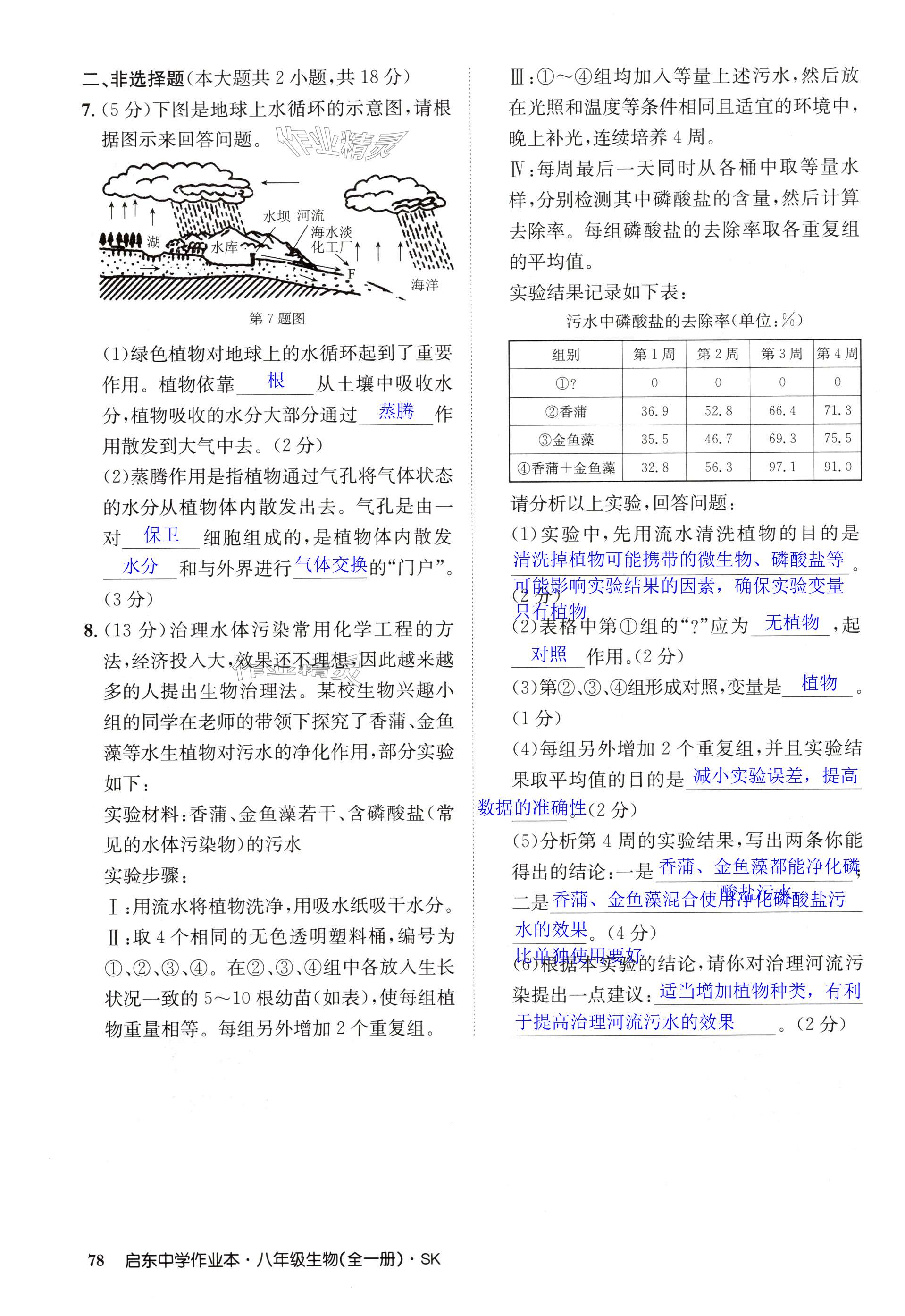 注:目前有些书本章节名称可能整理的还不是很完善,但都是按照顺序排列的,请同学们按照顺序仔细查找。练习册 2024年启东中学作业本八年级生物全一册苏科版 答案主要是用来给同学们做完题方便对答案用的,请勿直接抄袭。