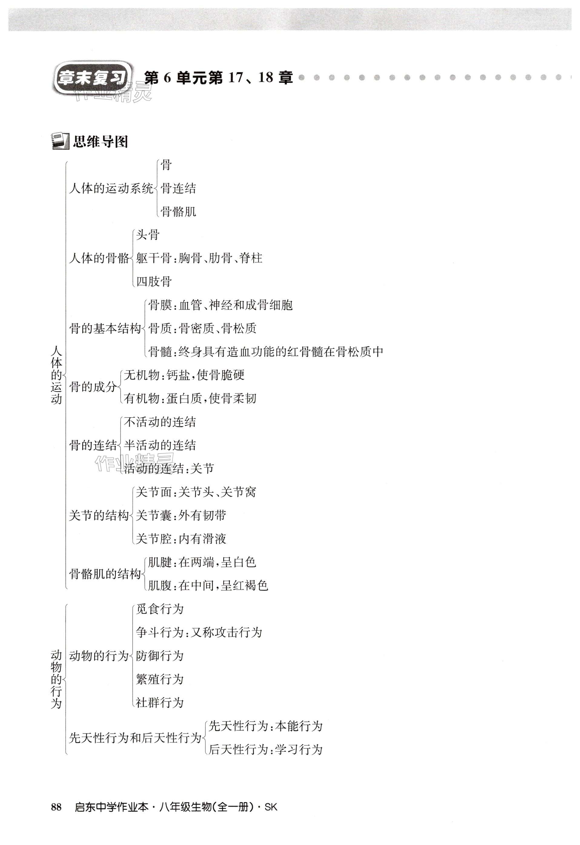 注:目前有些书本章节名称可能整理的还不是很完善,但都是按照顺序排列的,请同学们按照顺序仔细查找。练习册 2024年启东中学作业本八年级生物全一册苏科版 答案主要是用来给同学们做完题方便对答案用的,请勿直接抄袭。