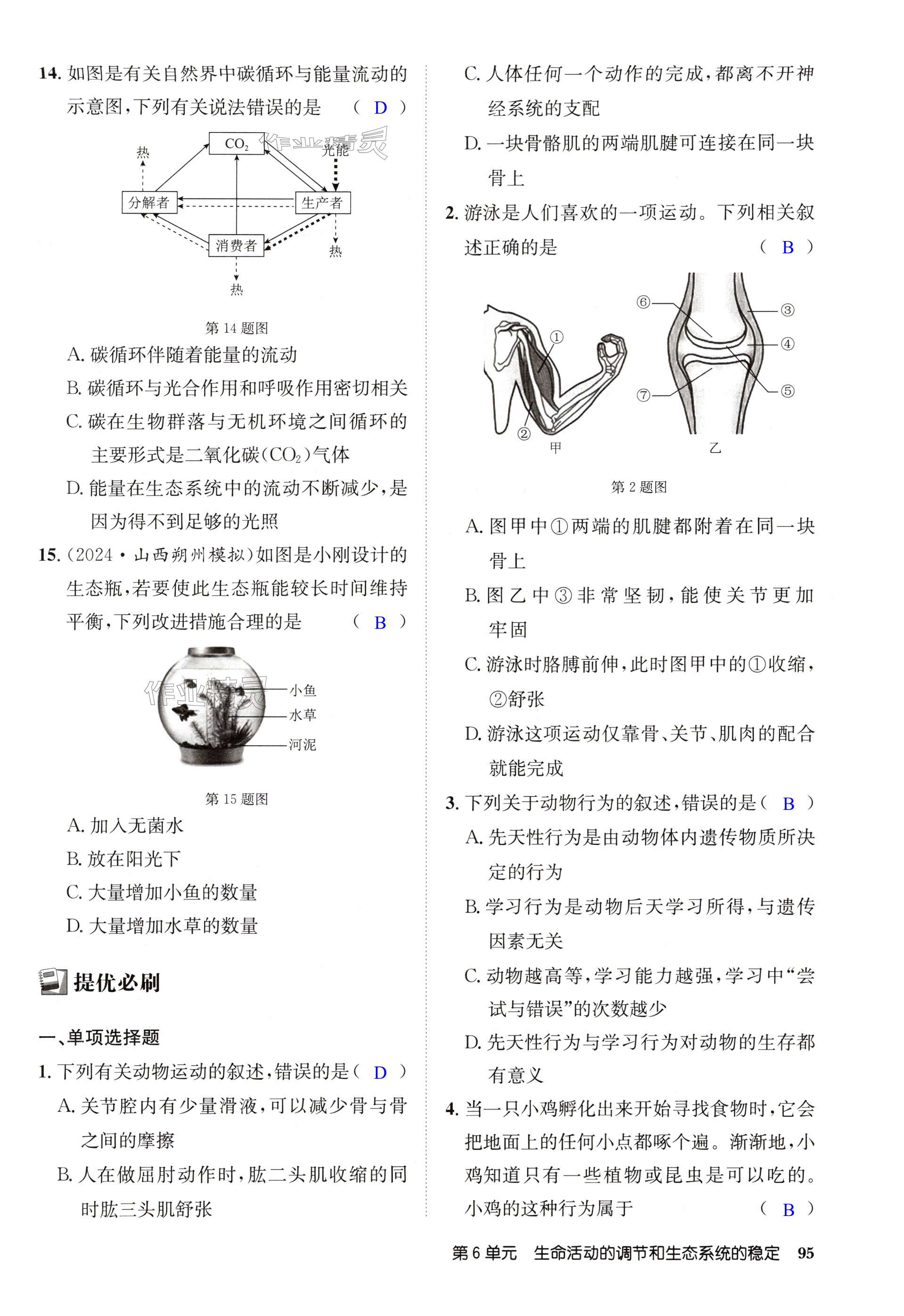 注:目前有些书本章节名称可能整理的还不是很完善,但都是按照顺序排列的,请同学们按照顺序仔细查找。练习册 2024年启东中学作业本八年级生物全一册苏科版 答案主要是用来给同学们做完题方便对答案用的,请勿直接抄袭。