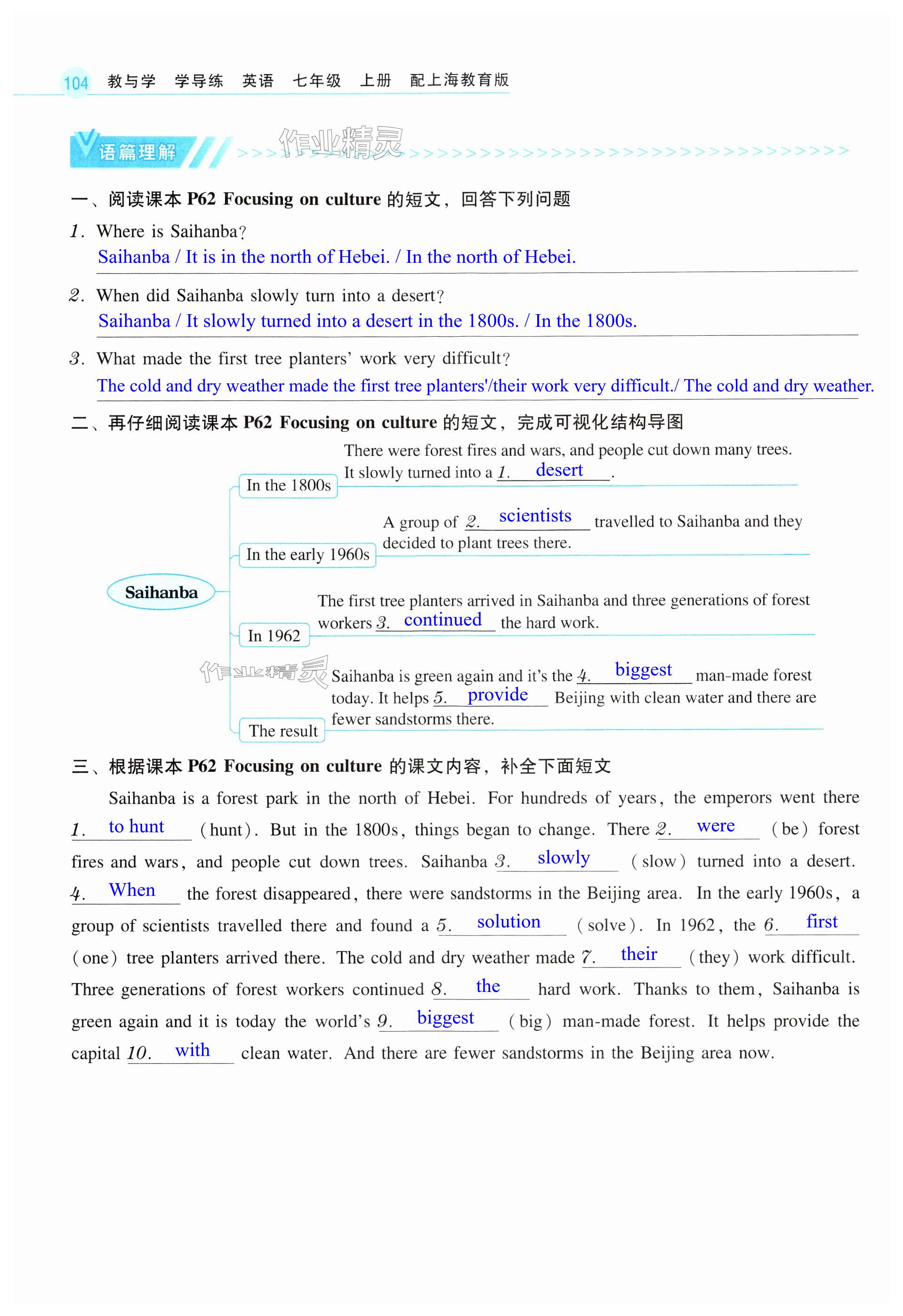 注:目前有些书本章节名称可能整理的还不是很完善,但都是按照顺序排列的,请同学们按照顺序仔细查找。练习册 2024年教与学学导练七年级英语上册沪教版 答案主要是用来给同学们做完题方便对答案用的,请勿直接抄袭。