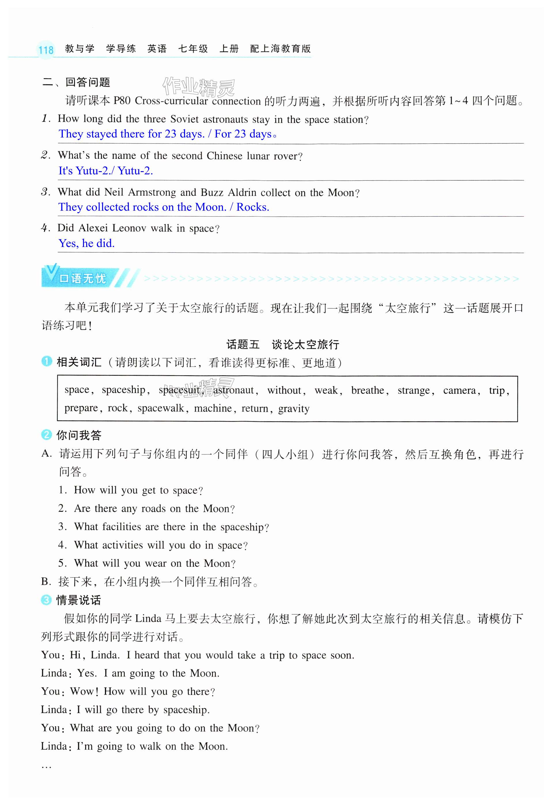 注:目前有些书本章节名称可能整理的还不是很完善,但都是按照顺序排列的,请同学们按照顺序仔细查找。练习册 2024年教与学学导练七年级英语上册沪教版 答案主要是用来给同学们做完题方便对答案用的,请勿直接抄袭。
