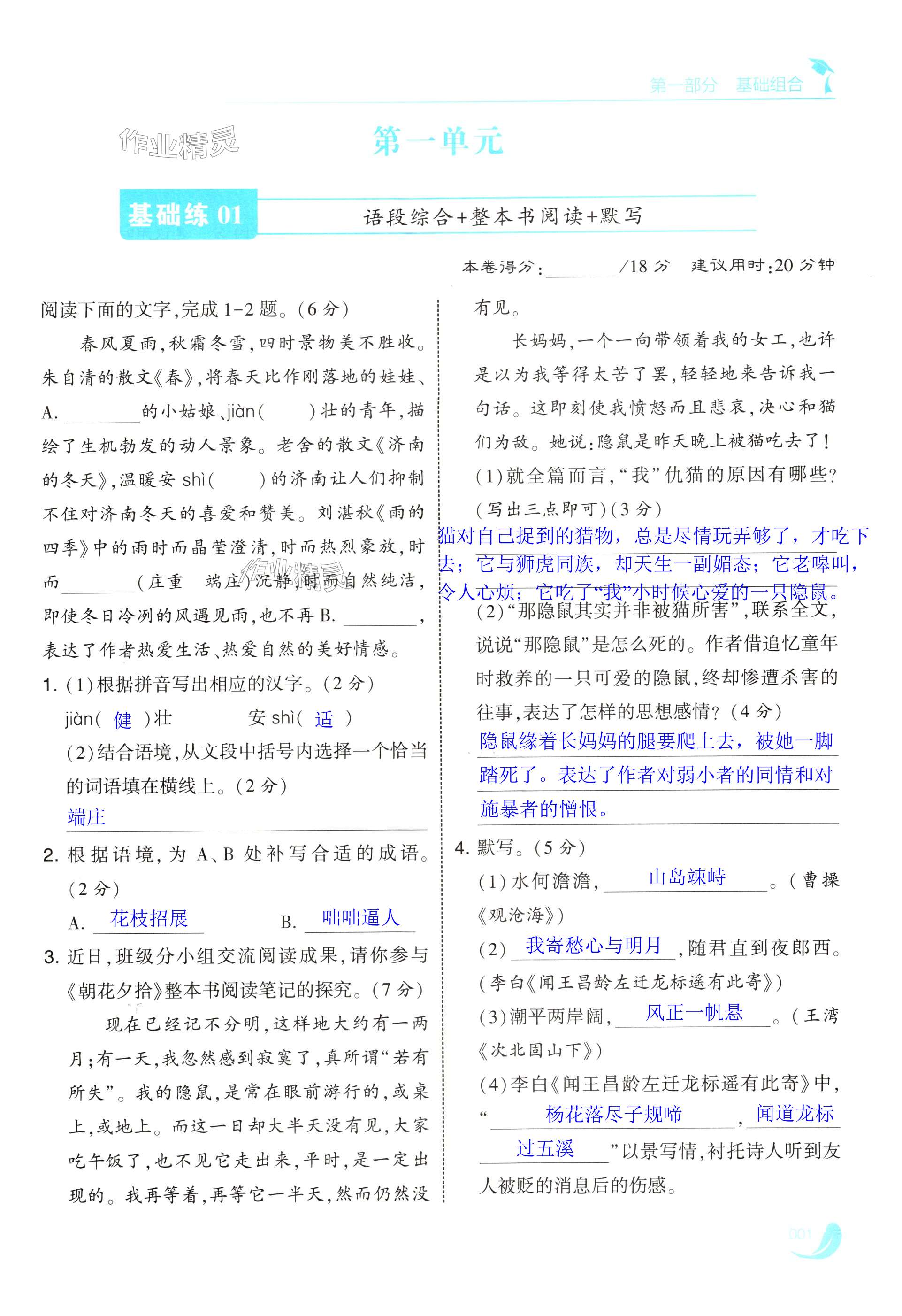 注:目前有些书本章节名称可能整理的还不是很完善,但都是按照顺序排列的,请同学们按照顺序仔细查找。练习册 2024年学霸组合训练七年级语文上册人教版常州专版 答案主要是用来给同学们做完题方便对答案用的,请勿直接抄袭。