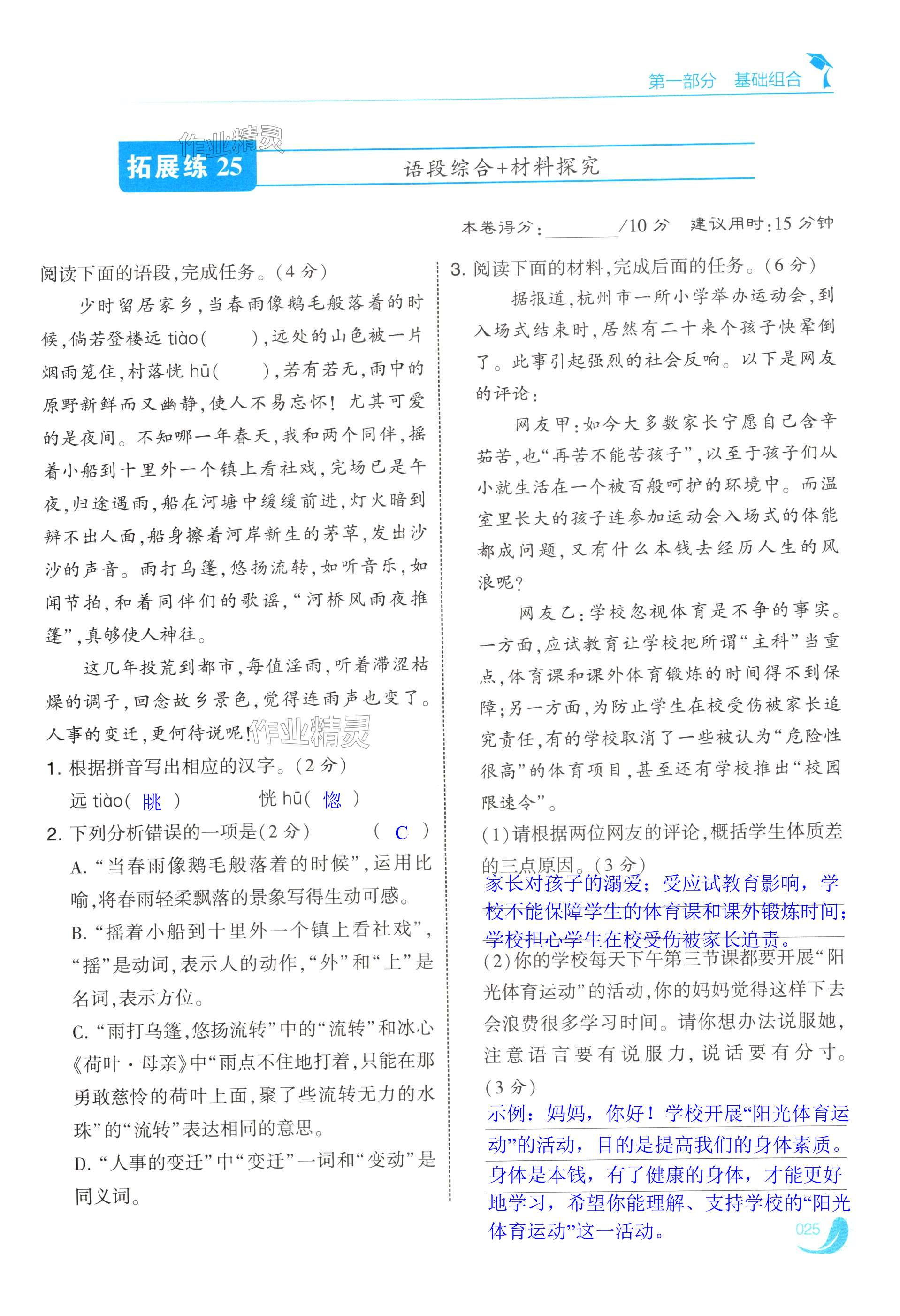 注:目前有些书本章节名称可能整理的还不是很完善,但都是按照顺序排列的,请同学们按照顺序仔细查找。练习册 2024年学霸组合训练七年级语文上册人教版常州专版 答案主要是用来给同学们做完题方便对答案用的,请勿直接抄袭。