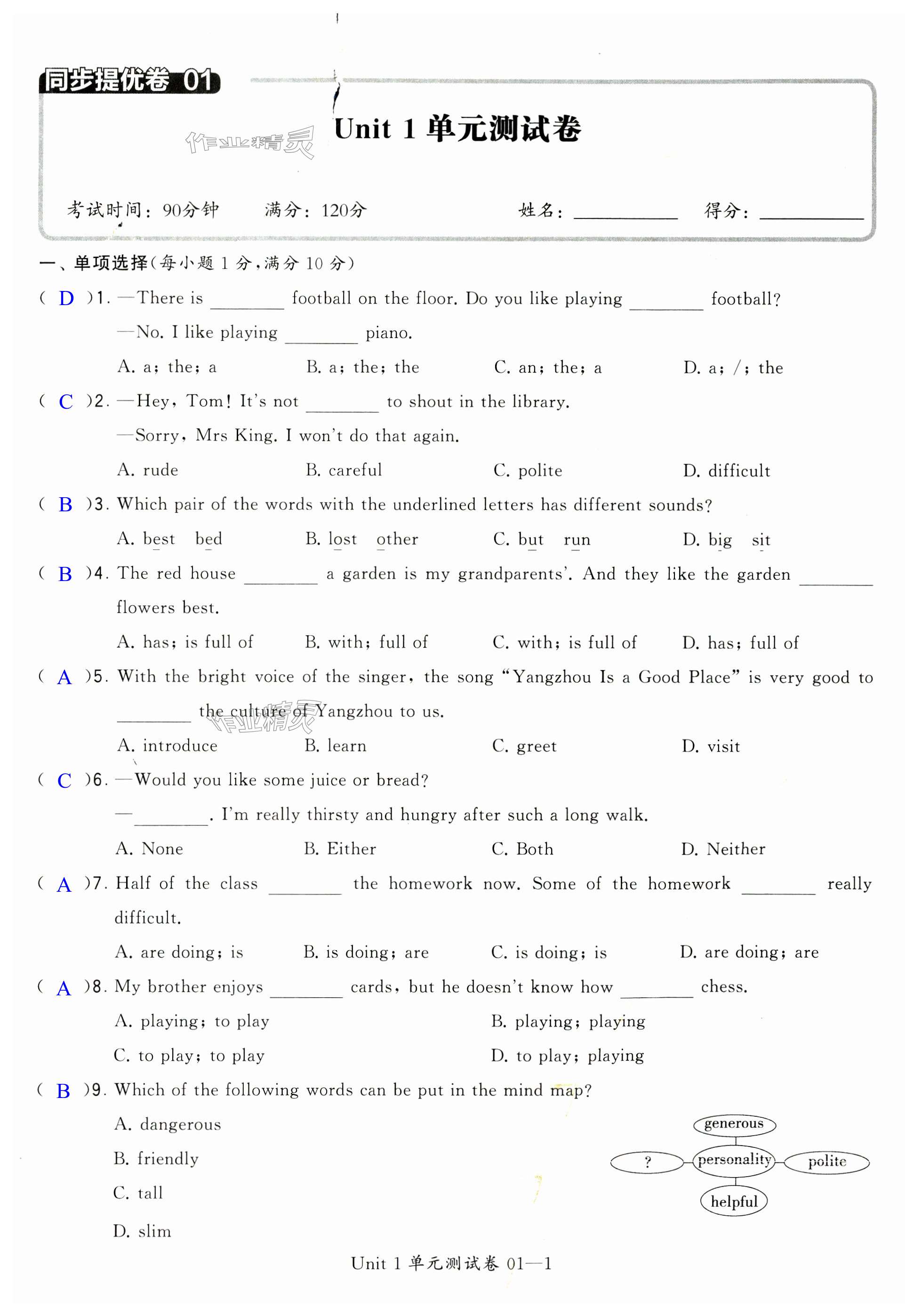注:目前有些书本章节名称可能整理的还不是很完善,但都是按照顺序排列的,请同学们按照顺序仔细查找。练习册 2024年学霸提优大试卷七年级英语上册译林版 答案主要是用来给同学们做完题方便对答案用的,请勿直接抄袭。