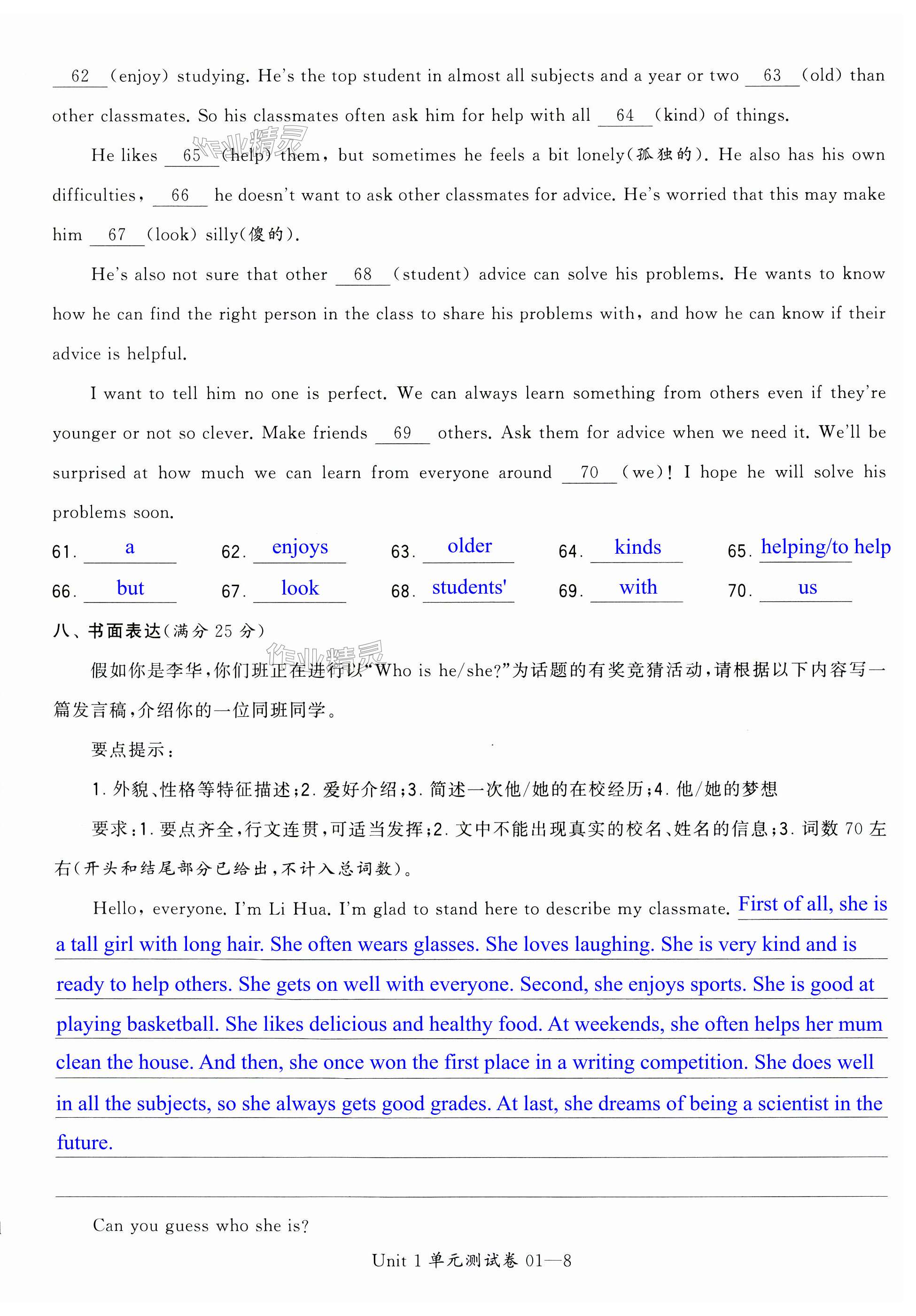 注:目前有些书本章节名称可能整理的还不是很完善,但都是按照顺序排列的,请同学们按照顺序仔细查找。练习册 2024年学霸提优大试卷七年级英语上册译林版 答案主要是用来给同学们做完题方便对答案用的,请勿直接抄袭。