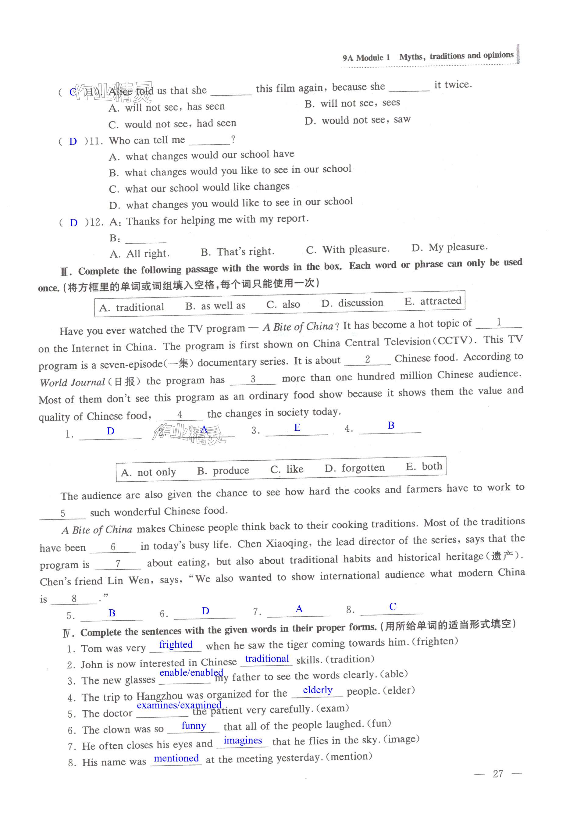 注:目前有些书本章节名称可能整理的还不是很完善,但都是按照顺序排列的,请同学们按照顺序仔细查找。练习册 2024年全优金典九年级英语全一册沪教版54制 答案主要是用来给同学们做完题方便对答案用的,请勿直接抄袭。