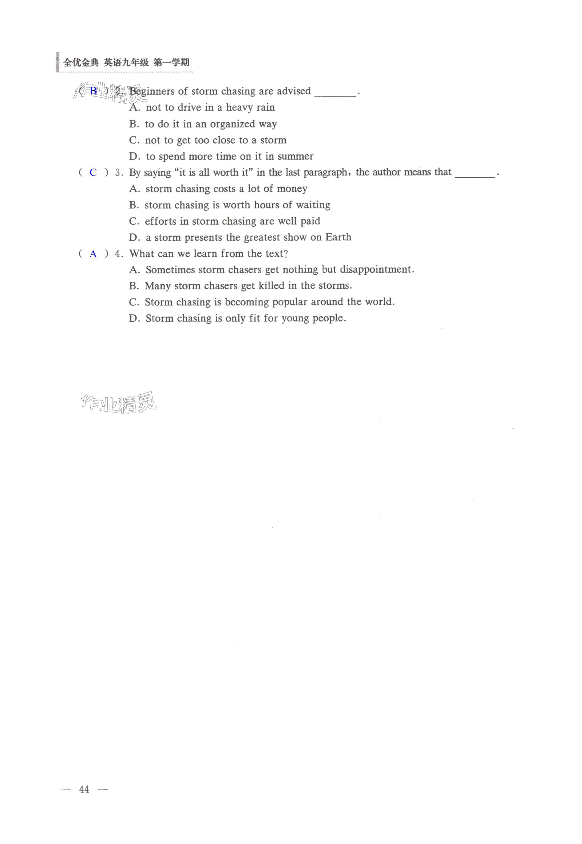 注:目前有些书本章节名称可能整理的还不是很完善,但都是按照顺序排列的,请同学们按照顺序仔细查找。练习册 2024年全优金典九年级英语全一册沪教版54制 答案主要是用来给同学们做完题方便对答案用的,请勿直接抄袭。