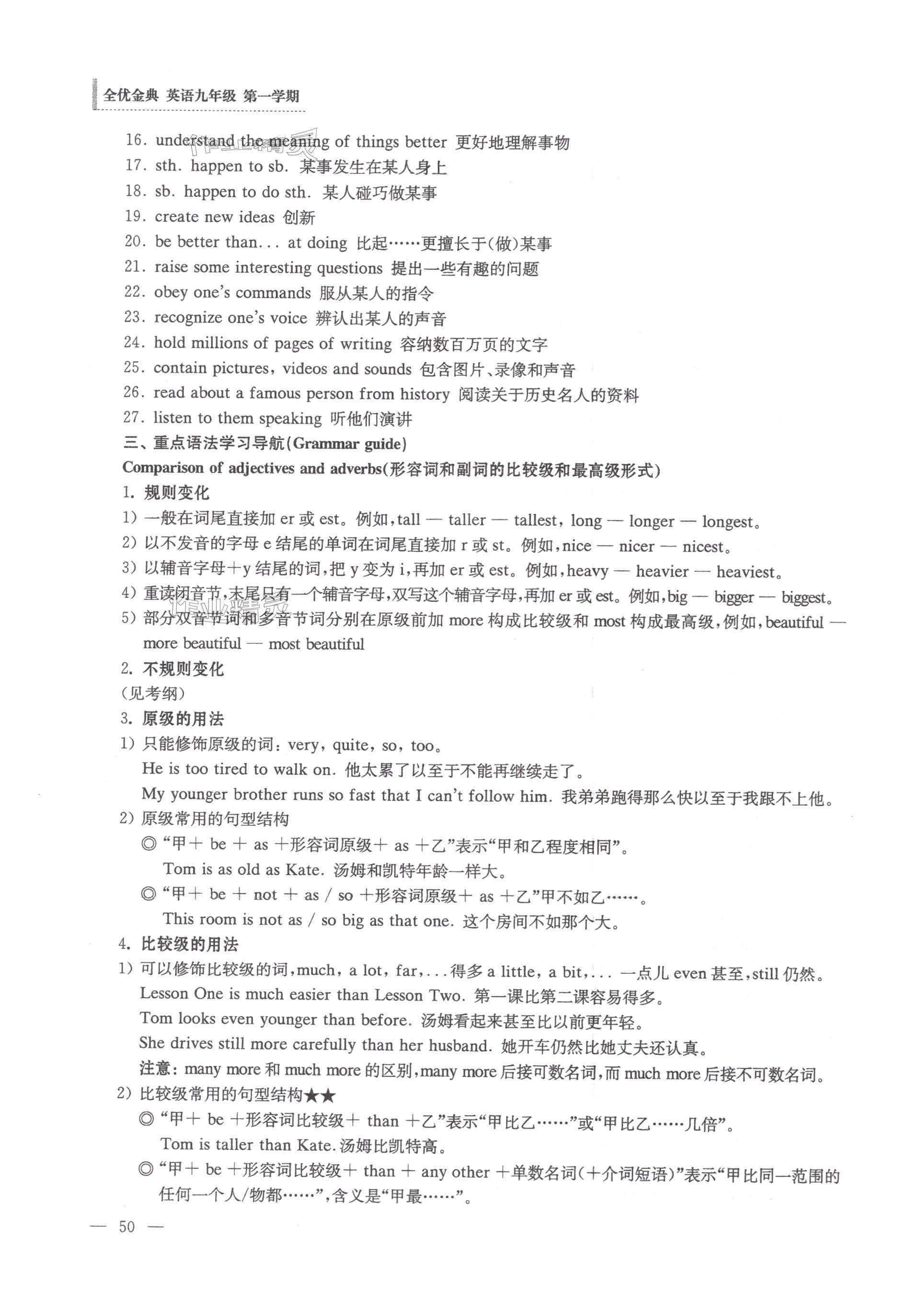 注:目前有些书本章节名称可能整理的还不是很完善,但都是按照顺序排列的,请同学们按照顺序仔细查找。练习册 2024年全优金典九年级英语全一册沪教版54制 答案主要是用来给同学们做完题方便对答案用的,请勿直接抄袭。