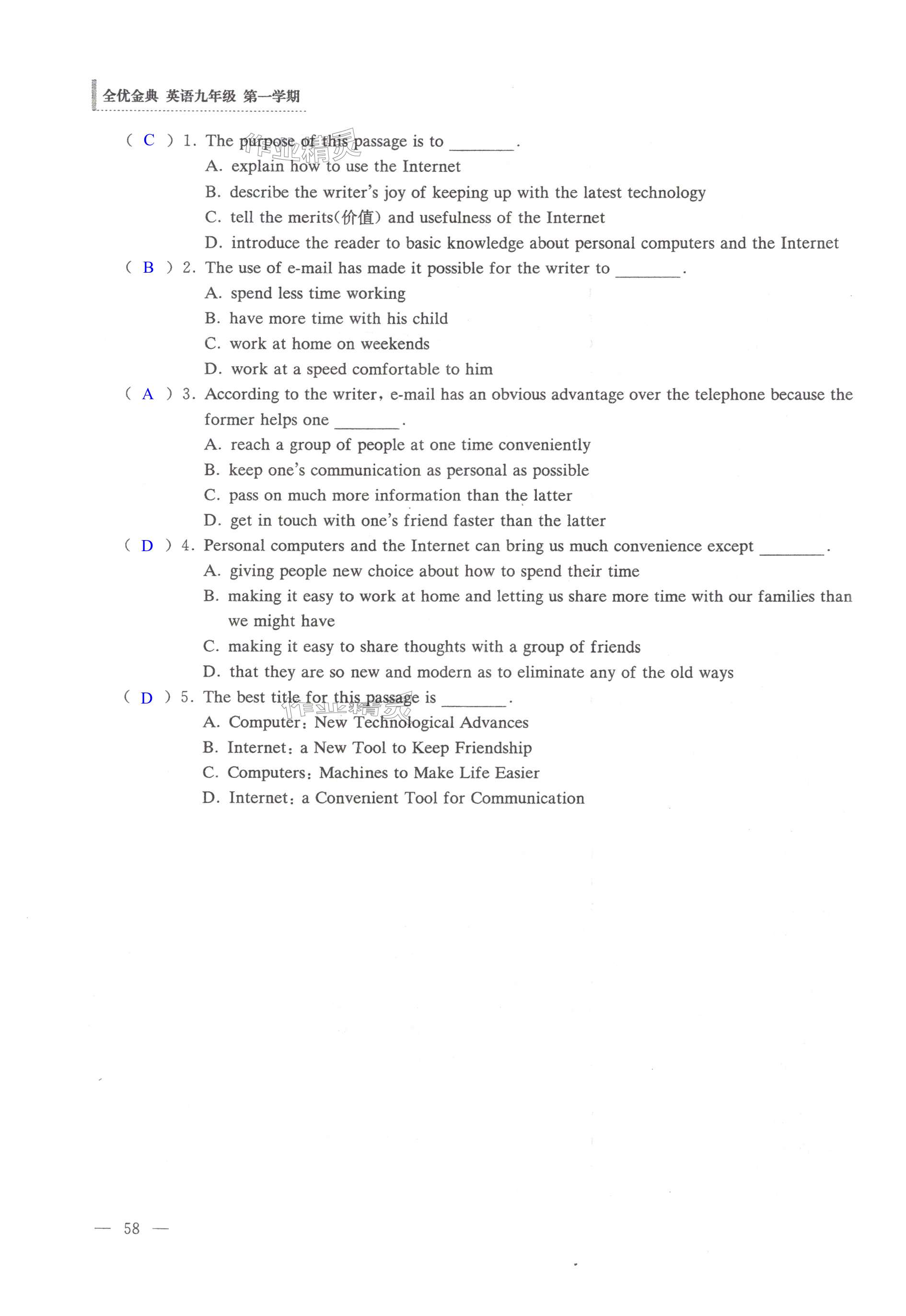 注:目前有些书本章节名称可能整理的还不是很完善,但都是按照顺序排列的,请同学们按照顺序仔细查找。练习册 2024年全优金典九年级英语全一册沪教版54制 答案主要是用来给同学们做完题方便对答案用的,请勿直接抄袭。
