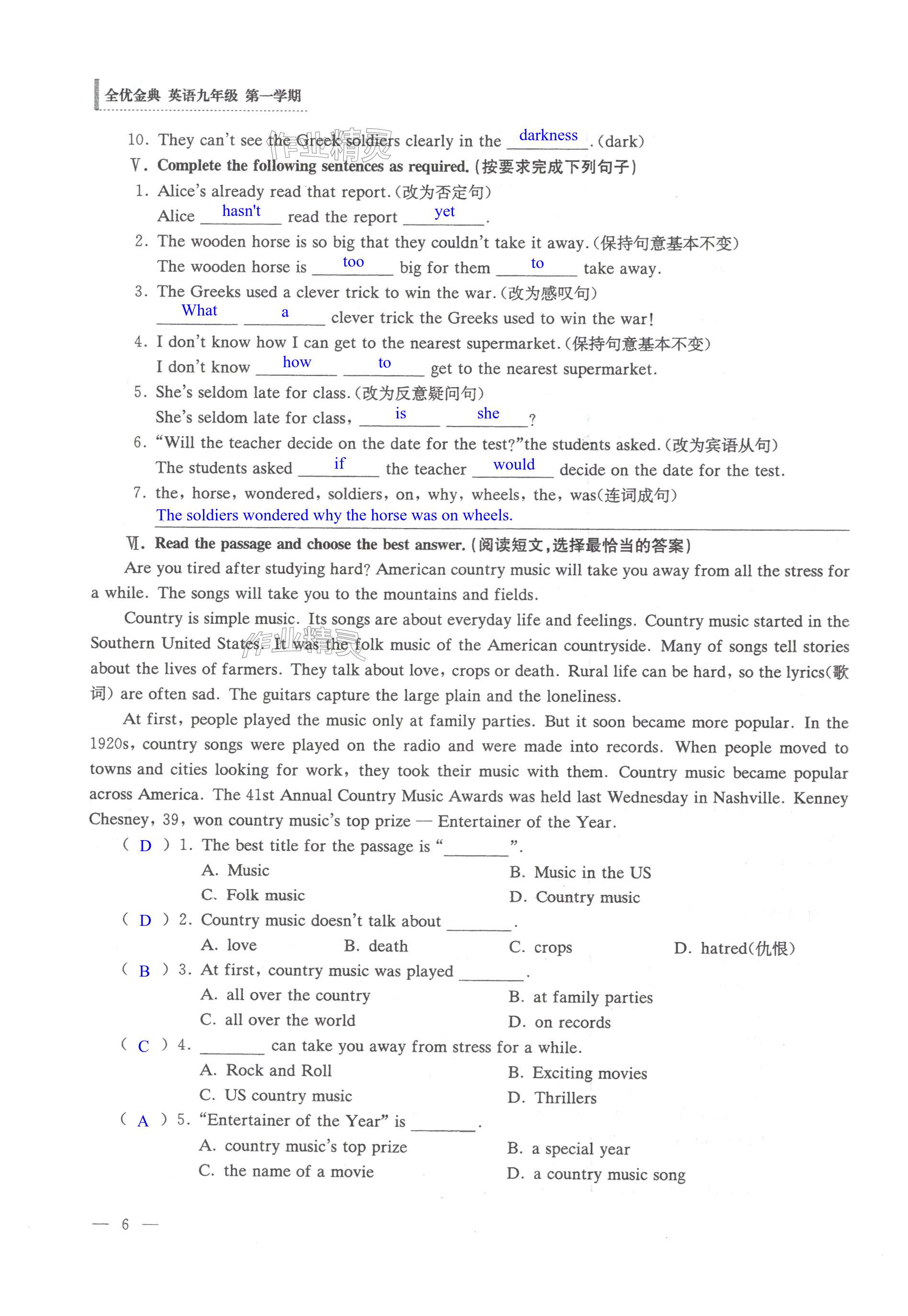 注:目前有些书本章节名称可能整理的还不是很完善,但都是按照顺序排列的,请同学们按照顺序仔细查找。练习册 2024年全优金典九年级英语全一册沪教版54制 答案主要是用来给同学们做完题方便对答案用的,请勿直接抄袭。