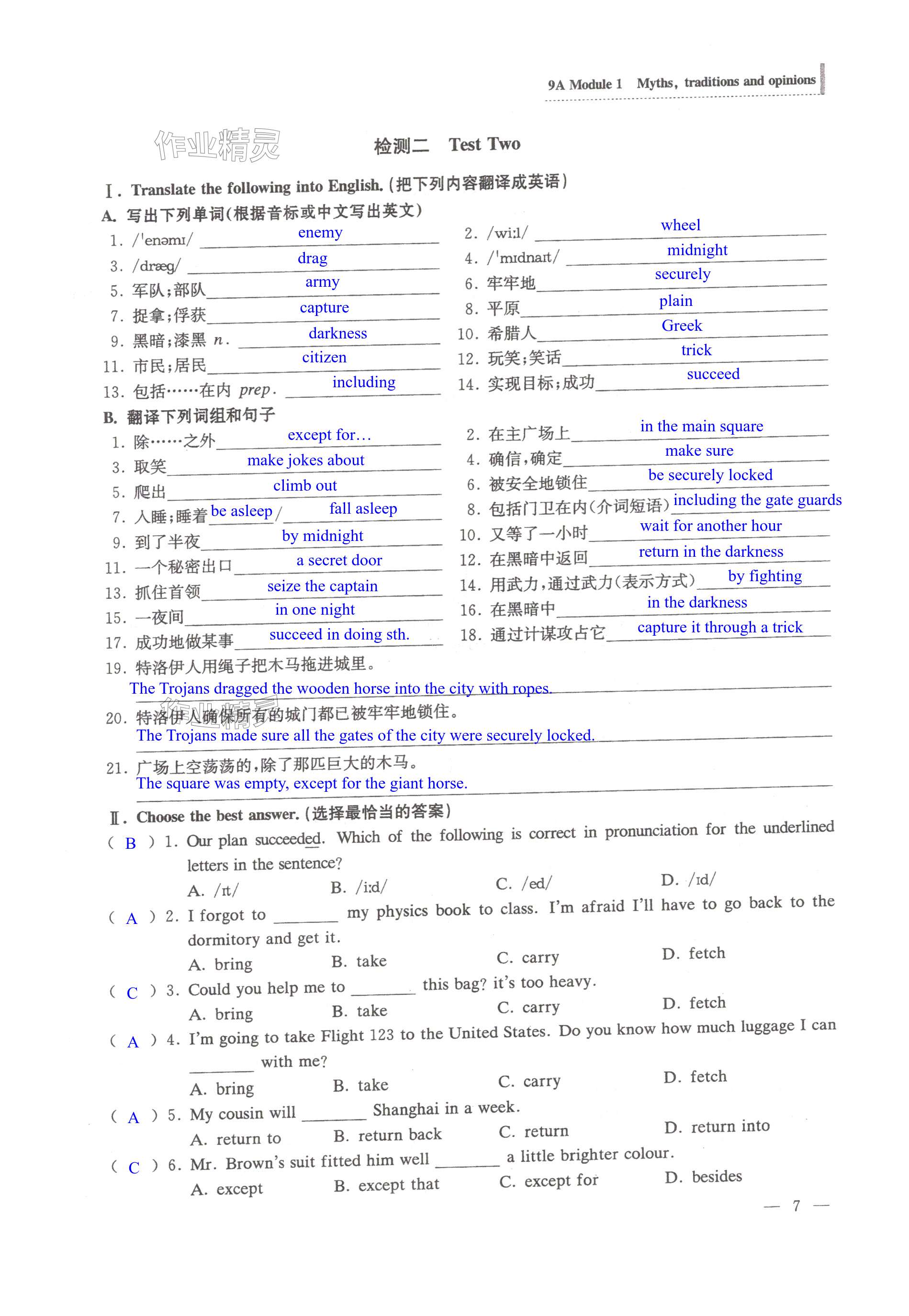 注:目前有些书本章节名称可能整理的还不是很完善,但都是按照顺序排列的,请同学们按照顺序仔细查找。练习册 2024年全优金典九年级英语全一册沪教版54制 答案主要是用来给同学们做完题方便对答案用的,请勿直接抄袭。
