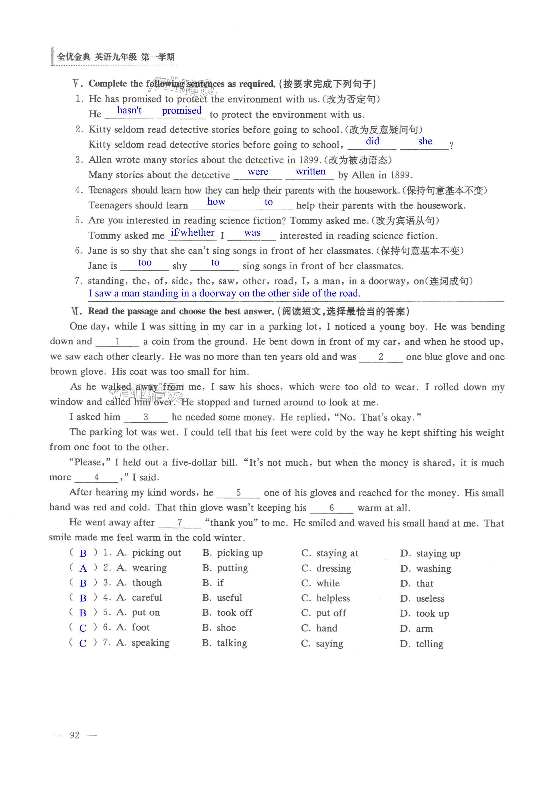 注:目前有些书本章节名称可能整理的还不是很完善,但都是按照顺序排列的,请同学们按照顺序仔细查找。练习册 2024年全优金典九年级英语全一册沪教版54制 答案主要是用来给同学们做完题方便对答案用的,请勿直接抄袭。