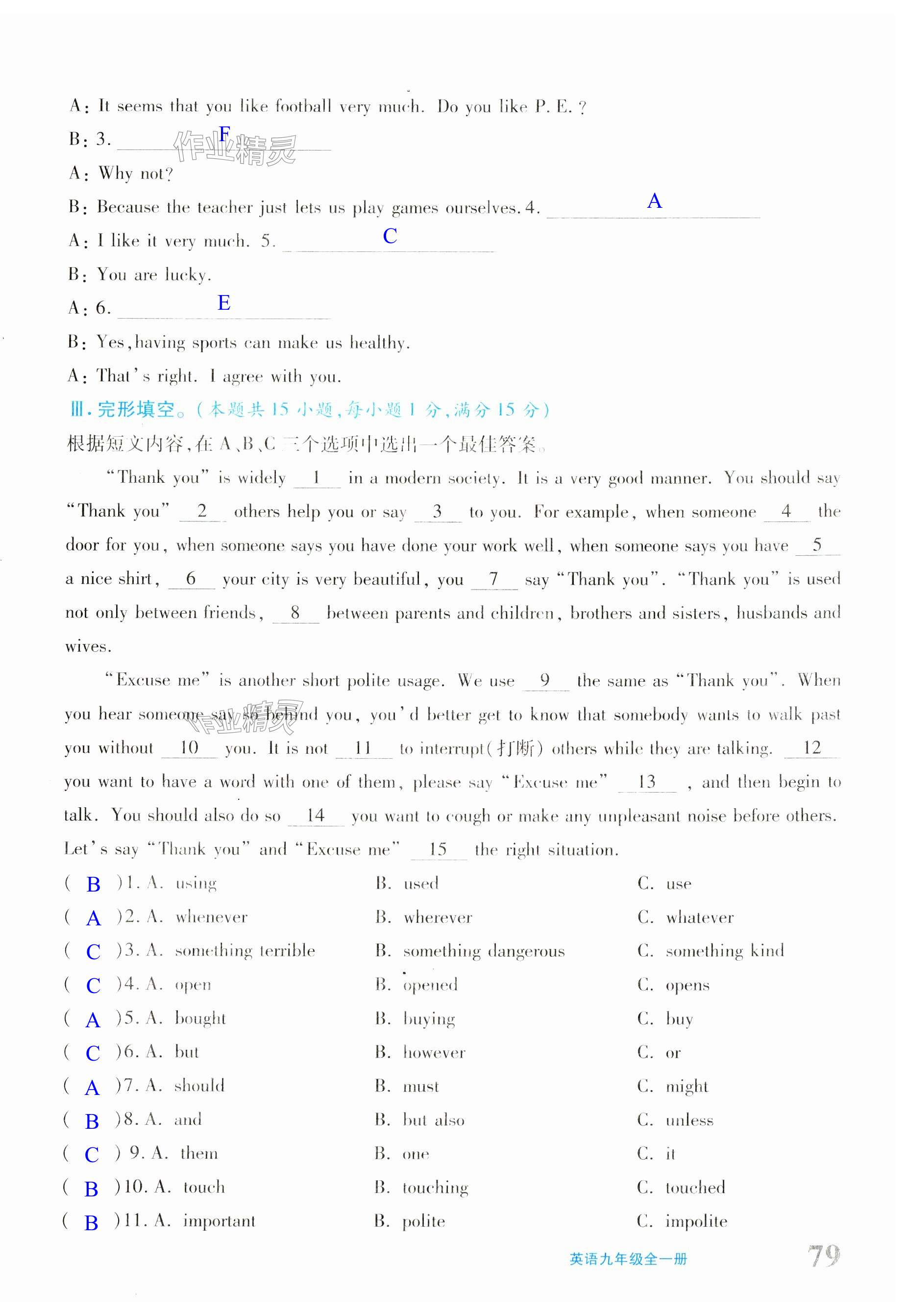 注:目前有些书本章节名称可能整理的还不是很完善,但都是按照顺序排列的,请同学们按照顺序仔细查找。练习册 2024年优学1+1评价与测试九年级英语全一册人教版 答案主要是用来给同学们做完题方便对答案用的,请勿直接抄袭。