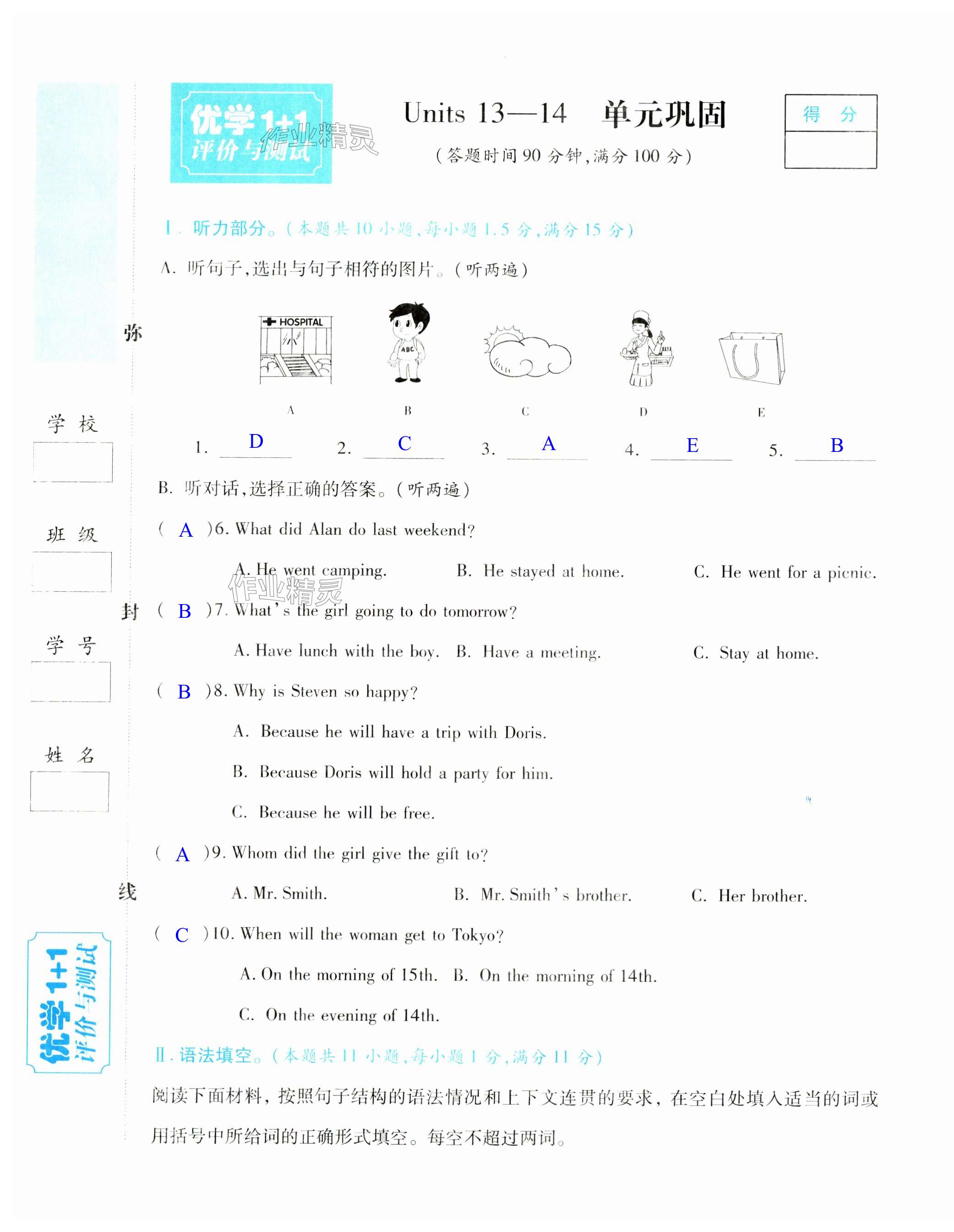 注:目前有些书本章节名称可能整理的还不是很完善,但都是按照顺序排列的,请同学们按照顺序仔细查找。练习册 2024年优学1+1评价与测试九年级英语全一册人教版 答案主要是用来给同学们做完题方便对答案用的,请勿直接抄袭。