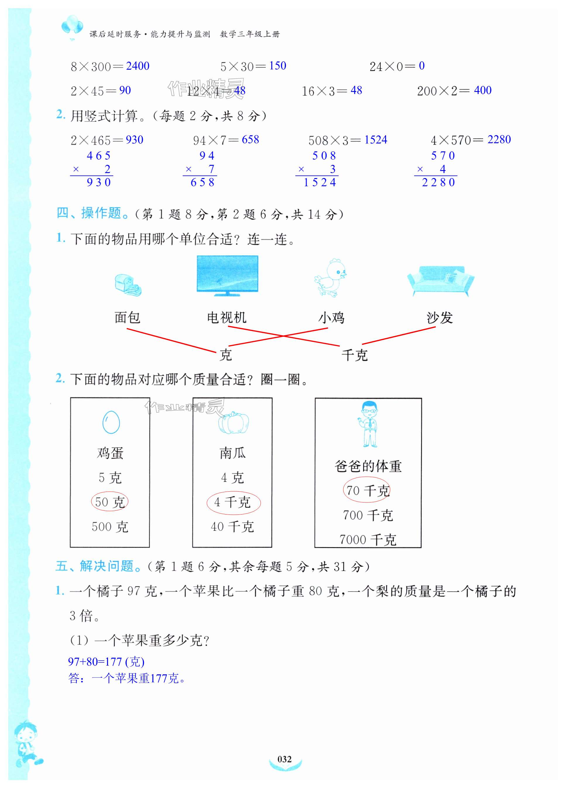 注:目前有些书本章节名称可能整理的还不是很完善,但都是按照顺序排列的,请同学们按照顺序仔细查找。练习册 2024年课后延时服务能力提升与监测三年级数学上册苏教版 答案主要是用来给同学们做完题方便对答案用的,请勿直接抄袭。