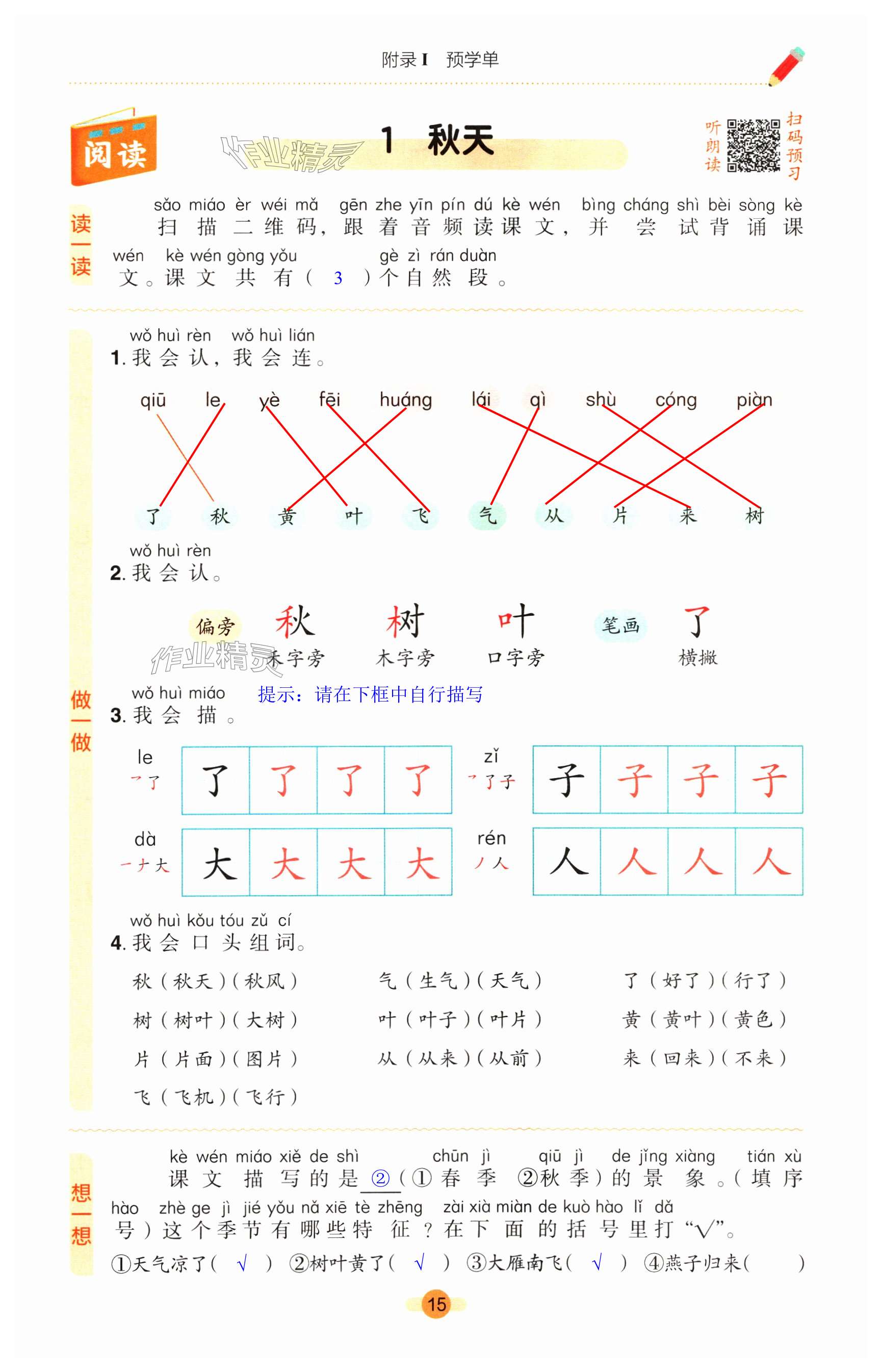 注:目前有些书本章节名称可能整理的还不是很完善,但都是按照顺序排列的,请同学们按照顺序仔细查找。练习册 2024年黄冈小状元作业本一年级语文上册人教版广东专版 答案主要是用来给同学们做完题方便对答案用的,请勿直接抄袭。