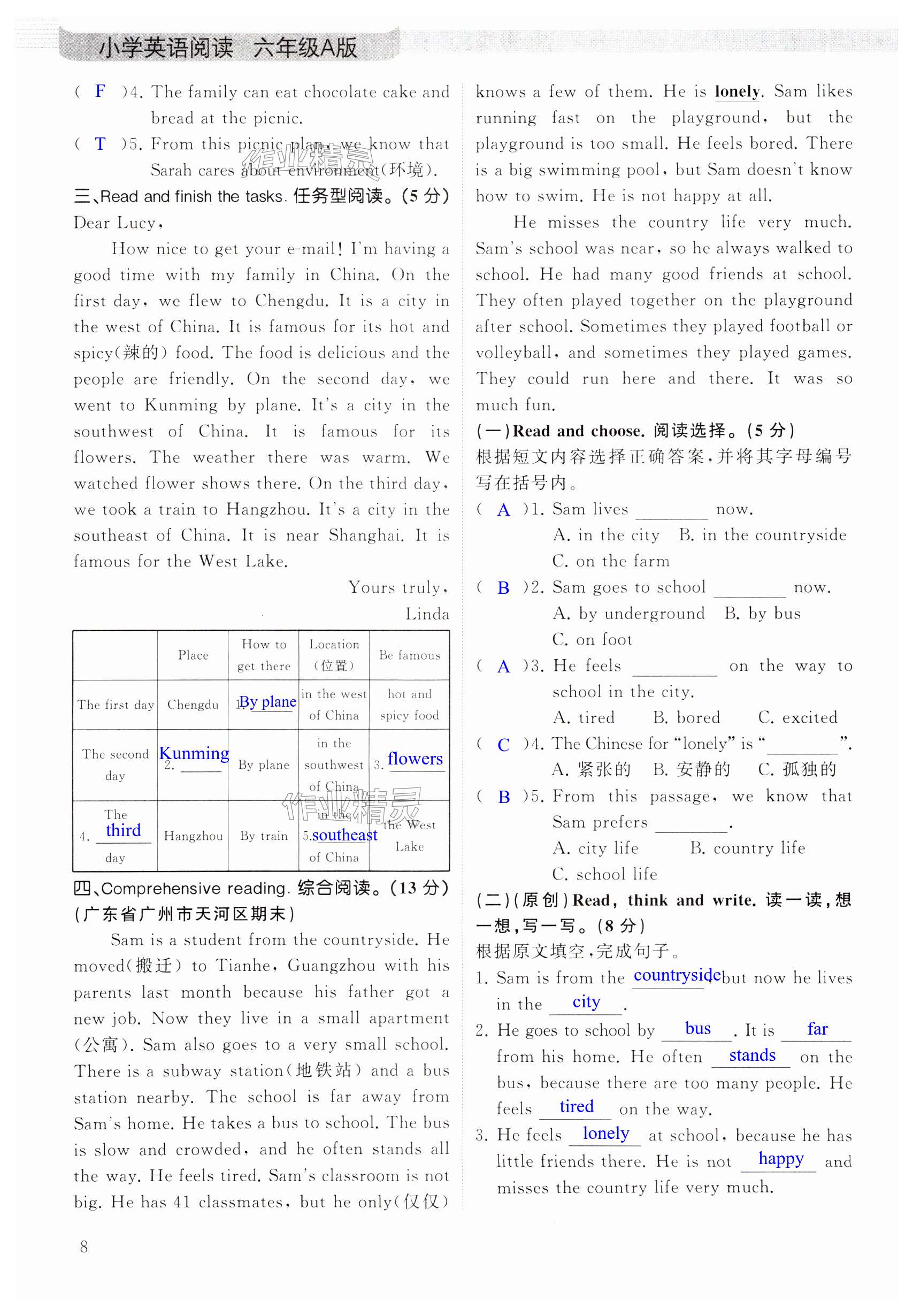 注:目前有些书本章节名称可能整理的还不是很完善,但都是按照顺序排列的,请同学们按照顺序仔细查找。练习册 2024年紫金天一小学英语阅读六年级上册人教版浙江专版 答案主要是用来给同学们做完题方便对答案用的,请勿直接抄袭。