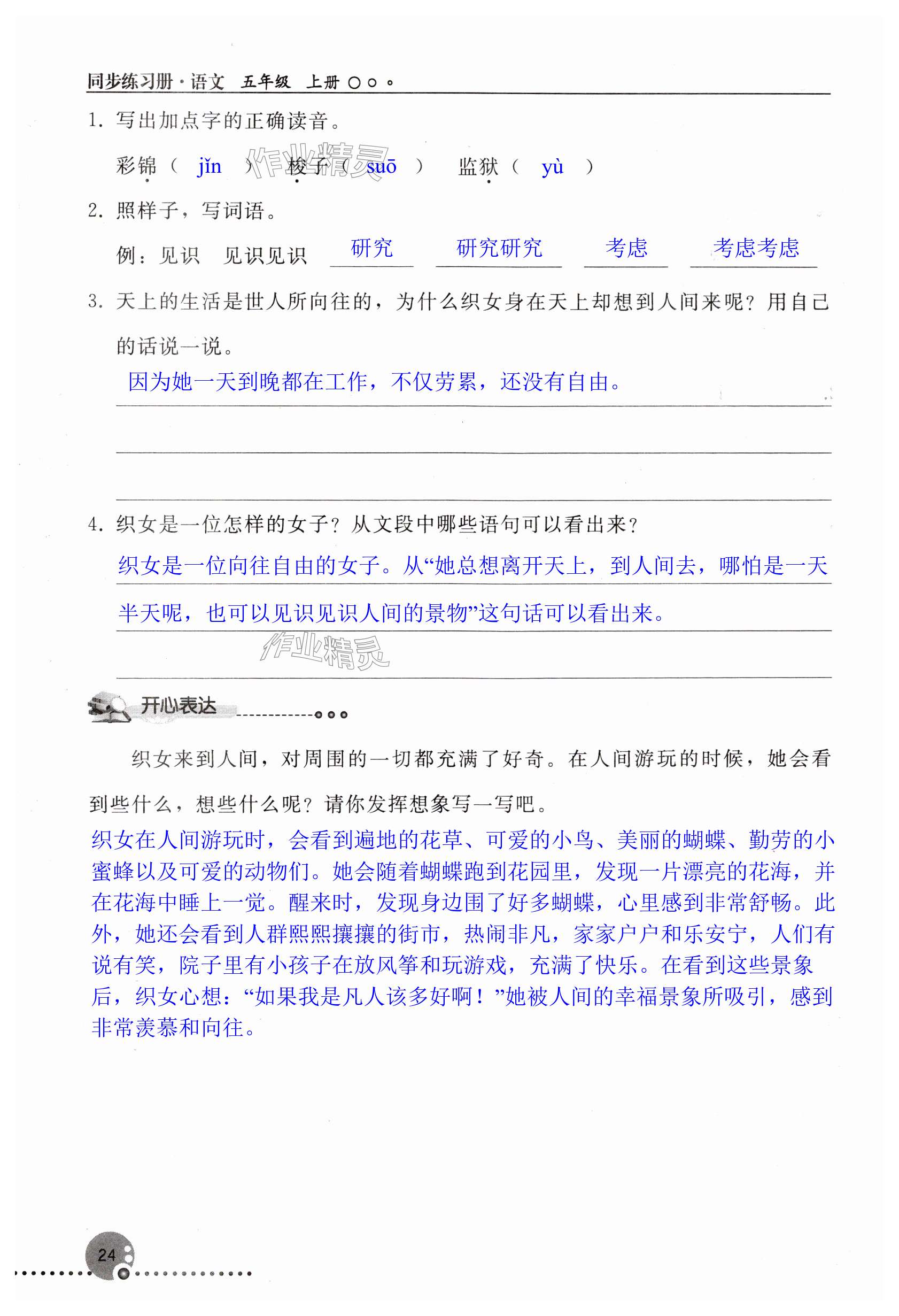 注:目前有些书本章节名称可能整理的还不是很完善,但都是按照顺序排列的,请同学们按照顺序仔细查找。练习册 2024年同步练习册五年级语文上册人教版人民教育出版社新疆专版 答案主要是用来给同学们做完题方便对答案用的,请勿直接抄袭。
