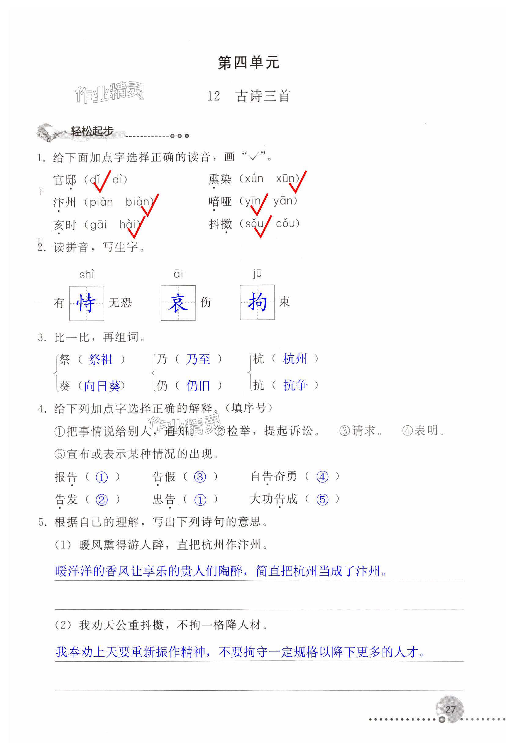 注:目前有些书本章节名称可能整理的还不是很完善,但都是按照顺序排列的,请同学们按照顺序仔细查找。练习册 2024年同步练习册五年级语文上册人教版人民教育出版社新疆专版 答案主要是用来给同学们做完题方便对答案用的,请勿直接抄袭。