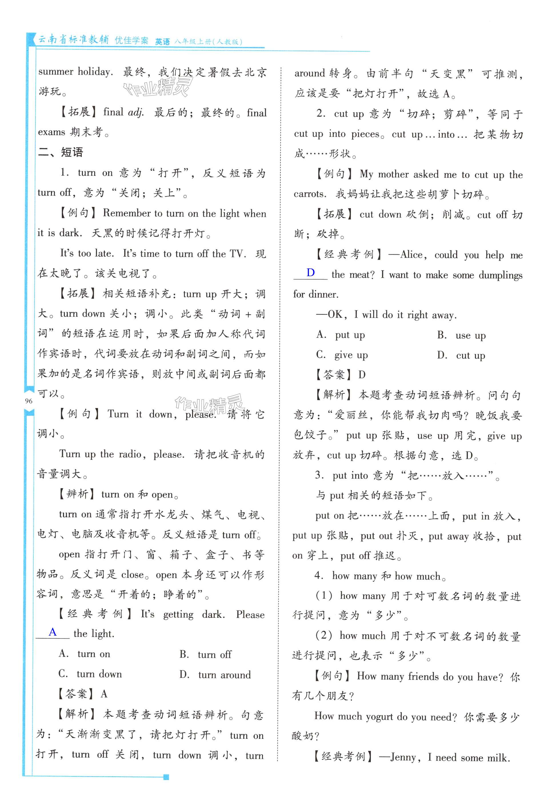注:目前有些书本章节名称可能整理的还不是很完善,但都是按照顺序排列的,请同学们按照顺序仔细查找。练习册 2024年云南省标准教辅优佳学案八年级英语上册人教版 答案主要是用来给同学们做完题方便对答案用的,请勿直接抄袭。