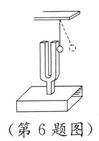 6. 如图所示,将正在发声的音叉紧靠悬挂在线上的小球,会发现小球多次被弹开,此现象表明____。如果将这个实验拿到月球表面上做,你会观察到什么现象?答:____。