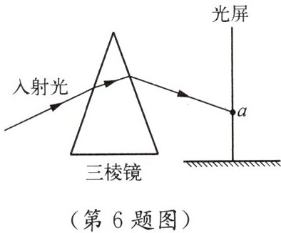 6. 如图所示,一束红光经过三棱镜折射后,在光屏上a点处形成一个红色光斑,现保持入射位置、方向及三棱镜位置不变,仅将红光改为紫光,以下说法正确的是( )