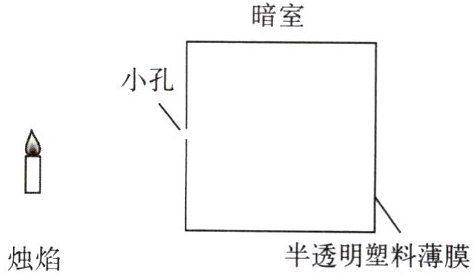 (2) 将小孔靠近点燃的蜡烛,观察半透明塑料薄膜上烛焰的像。与烛焰相比,它的大小、正倒有何不同?