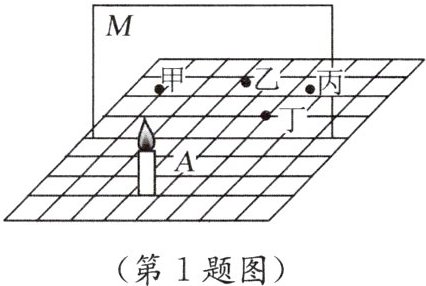 1. 如图所示,蜡烛在平面镜 M 中所成像的位置应该是图中的( )