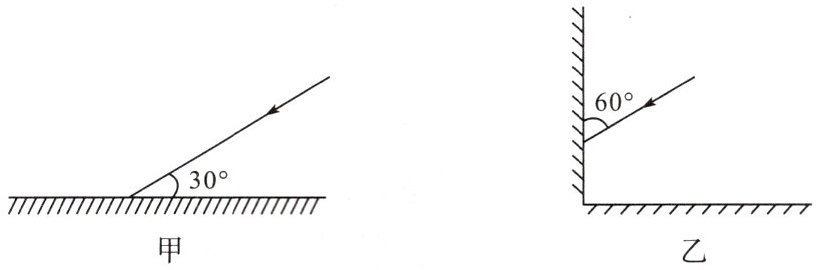 (1)如图甲所示,光与镜面成30°角射在平面镜上,请在图中画出反射光线并标出反射角的大小。