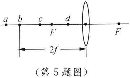 5. 如图所示,a、b、c、d 是距凸透镜不同距离的四个点,F 为焦点。下列几种光学仪器的成像原理与物体在不同点时的成像情况相对应,下列说法正确的是( )