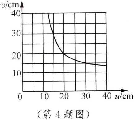 4. 某班同学在探究凸透镜成像规律实验中,绘制了物体到凸透镜的距离 u 跟像到凸透镜的距离 v 之间关系的图像,如图所示。下列说法中正确的是( )