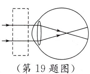 19. 请你在图中的虚线框内填入能矫正该视力缺陷的透镜。