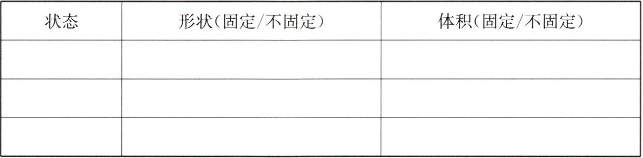 在烧杯中放入少许冰块,对其进行加热直至沸腾,观察水的三种状态变化。想一想:水有哪几种状态?不同状态下的水,它们的形状、体积有何特点?