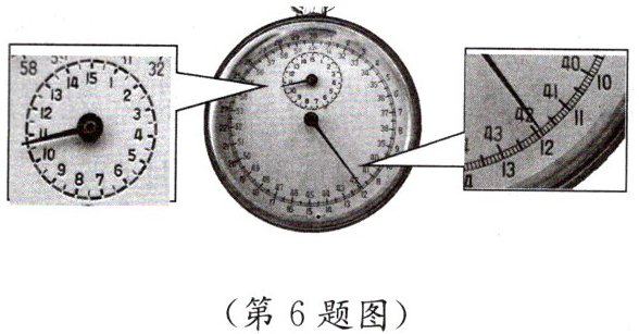 (1) 观察秒表:大表盘指针运动一周所表示的时间是______,分度值是______;小表盘指针运动一周所表示的时间是______,分度值是______。