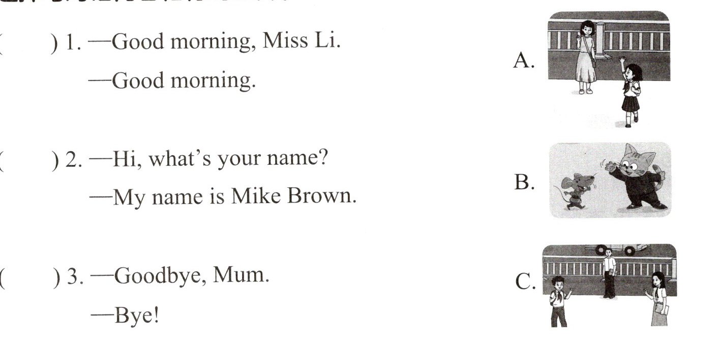 ( ) 3. —Goodbye, Mum.—Bye! C.