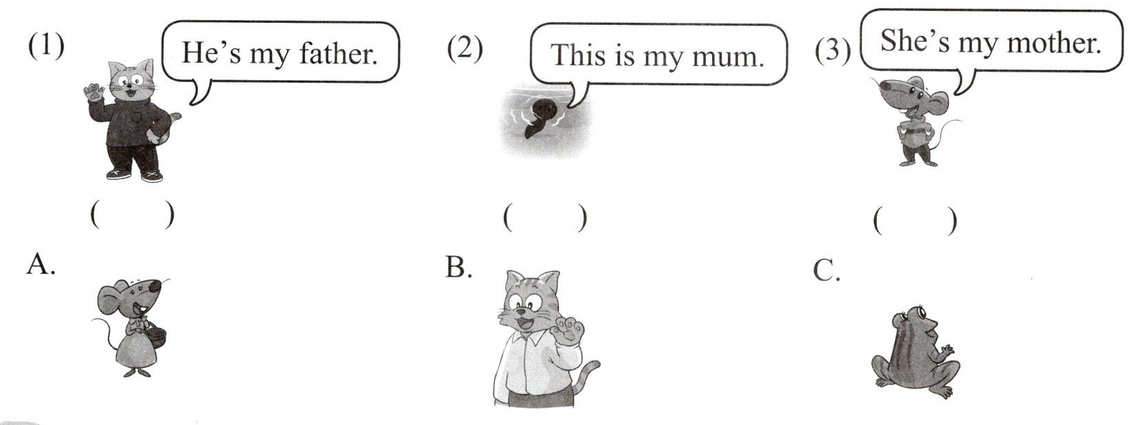 1. 根据课本第 44 页 Cartoon time 的内容,找一找他们的爸爸或妈妈。