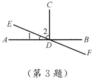 3. 如图,直线AB,EF相交于点D,$∠ADC= 90^{\circ }$.