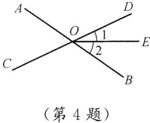 4. 如图,已知直线AB,CD相交于点O,且$∠1与∠2的度数之比为2:3$,$∠AOC= 60^{\circ }$.求$∠2$的大小.