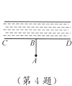 4. 工人计划把河水引到水池A中,他先作河岸CD的垂线AB,垂足为B(如图),然后沿AB开渠,能使所开的渠道最短,这样设计的依据是 .