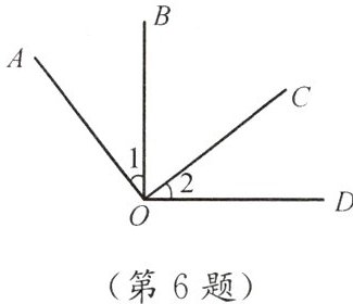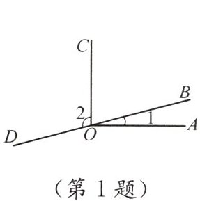 1. 如图,∠1= 15°,∠AOC= 90°,点B,O,D在一条直线上,则∠2的大小为( )