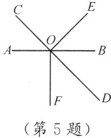 5. 如图,直线AB,CD相交于点O,OE⊥CD,OF⊥AB,∠EOF= 145°.求∠BOD的大小.