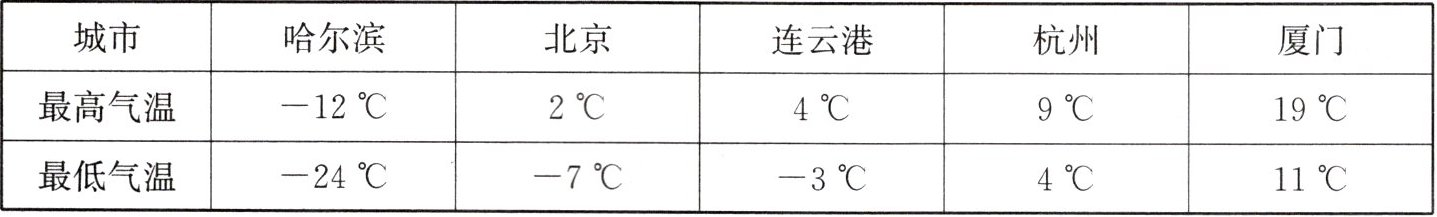 |城市|哈尔滨|北京|连云港|杭州|厦门|