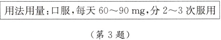 用法用量:口服,每天60~90 mg,分2~3次服用