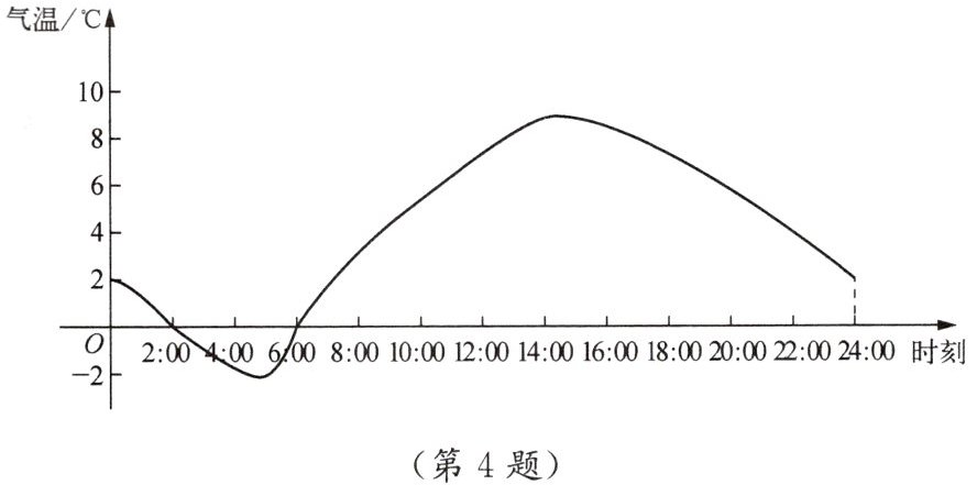 4. 某一天气温随时间变化的情况如图,观察图形,回答下列问题: