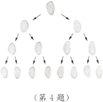 4. 细菌通过分裂的方式进行繁殖,1个细菌分裂成2个细菌,这2个细菌又分别能分裂成2个细菌……如图是某种细菌分裂的示意图,已知该种细菌每20 min能分裂一次,则1个该种细菌经过3 h可以分裂成______个细菌.