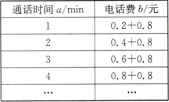2. 某通信套餐的电话费与通话时间的关系如下表: